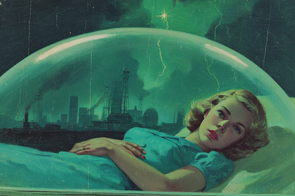No boys for her and no friends, only a mother who spent as much time as she could on the surface, scavenging for materials until the solar winds scarred her face and wrecked her voice. She had forbidden her daughter to accompany her but the girl devised a plan to ascend anyway, staying in the pod when the weather was especially brutal. Opening the hatch when it wasn’t.